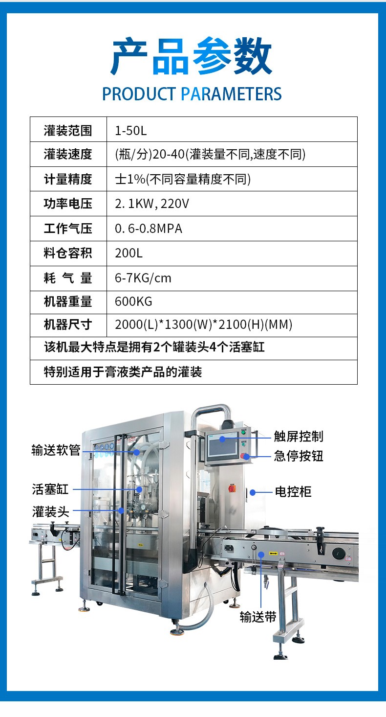 跟蹤式調(diào)味醬灌裝機(jī)設(shè)備配置定量灌裝、定液位灌裝兩種方式,計(jì)量誤差2克。定量灌裝保證每一瓶的灌裝質(zhì)量。定液位灌裝可讓每一瓶的液位都齊平,不會(huì)因?yàn)椴A康闹亓坎?誤差產(chǎn)品賣相。兩種模式,只需要一鍵切換。