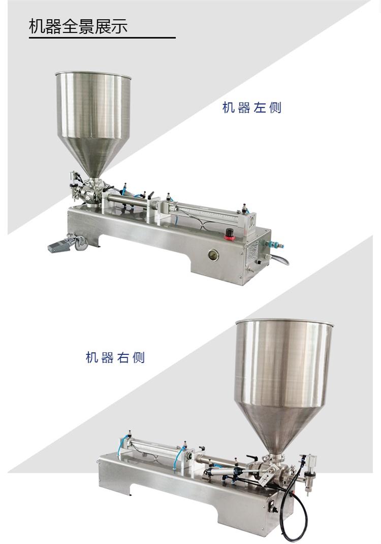氣動(dòng)膏體灌裝機(jī)主要適用于化工、食品、日化、藥品、農(nóng)藥、潤滑油等行業(yè)的液體膏體等物質(zhì)的定量灌裝,該灌裝機(jī)缸體、機(jī)殼、料斗均由不銹鋼材質(zhì)制成,活塞有四氟乙烯材料制成,氣動(dòng)部分均采用氣動(dòng)元件,符合GMP[要求,氣動(dòng)膏體灌裝機(jī)的灌裝量和灌裝速度可任意調(diào)節(jié),擁有腳踏開關(guān)和自動(dòng)灌裝功能,精度高,結(jié)構(gòu)簡(jiǎn)潔,操作便利。
