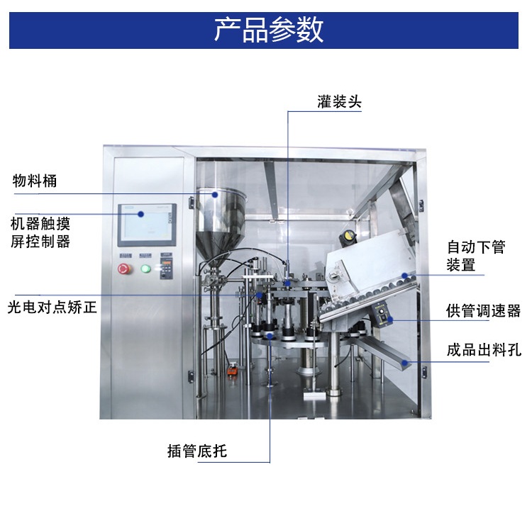 C、該機(jī)由全自動(dòng)操作系統(tǒng)完成供管、洗管、識(shí)標(biāo)、灌裝、熱溶、封尾、打碼、修整、出成品全過程。