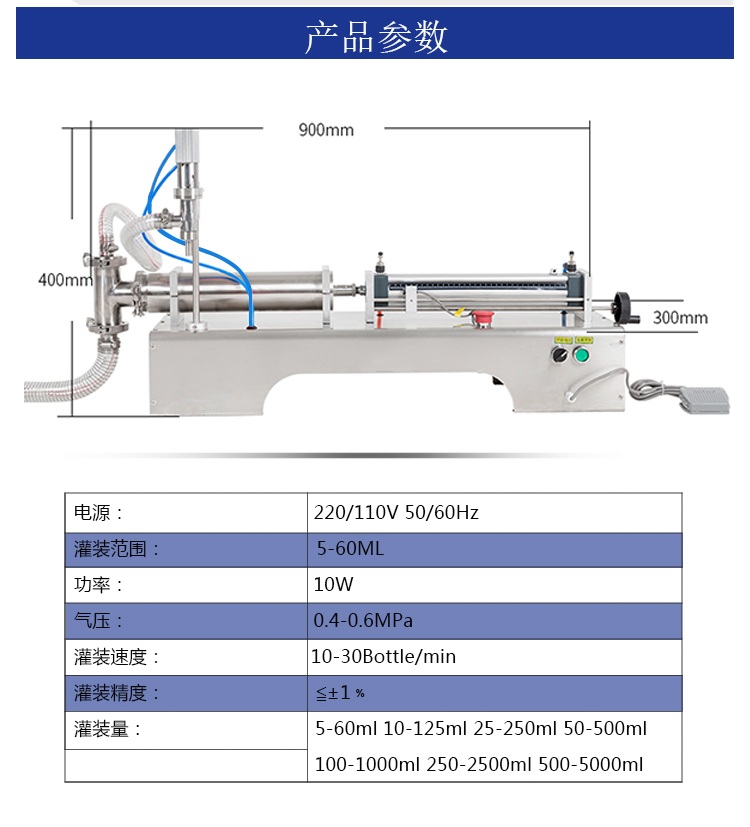 小型半自動單頭液體灌裝機(jī)設(shè)備細(xì)節(jié):